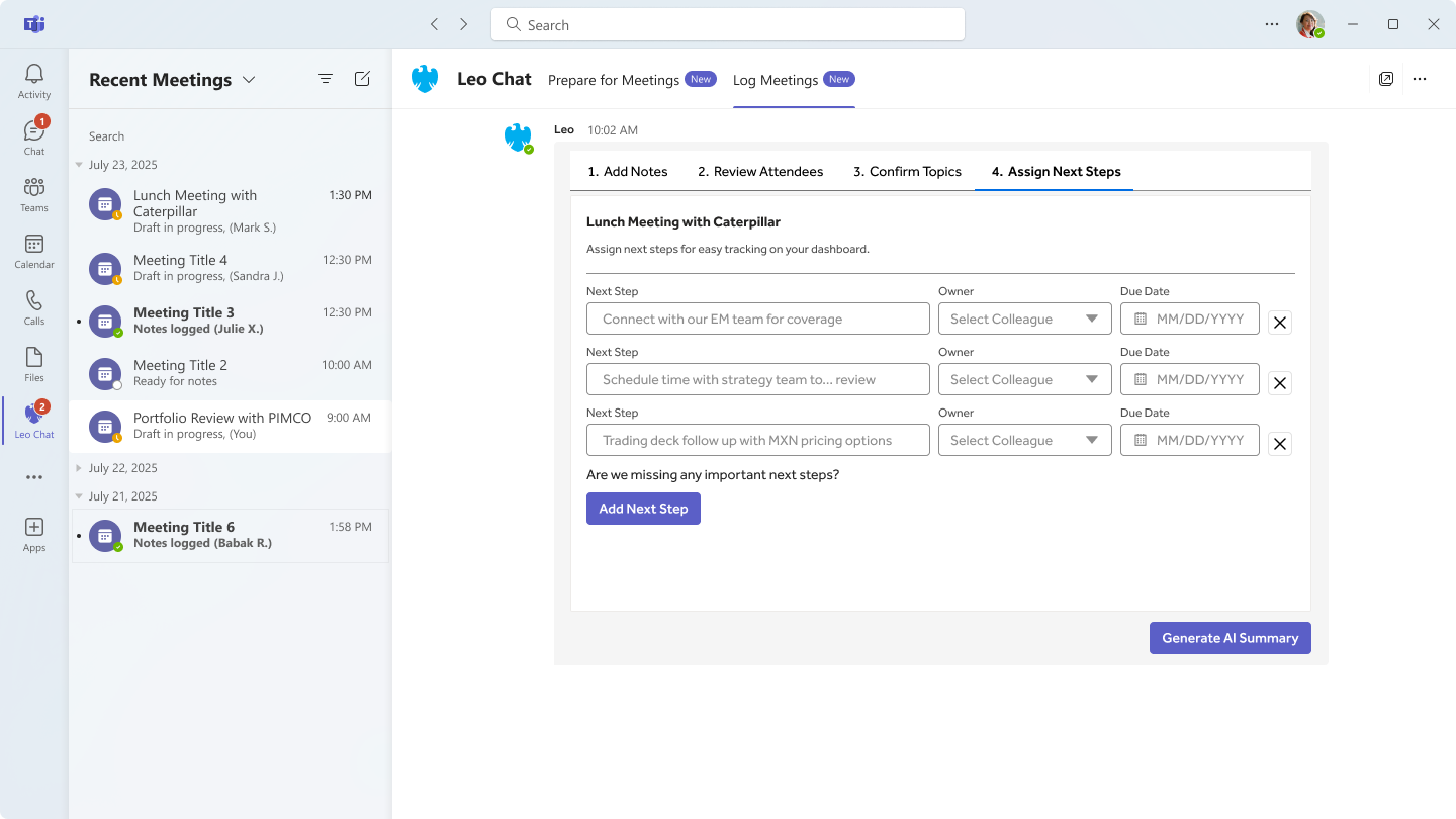 Prompts users with a step-by-step, easy way to ensure interactions are logged consistently and completely using AI.
